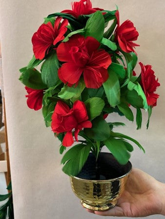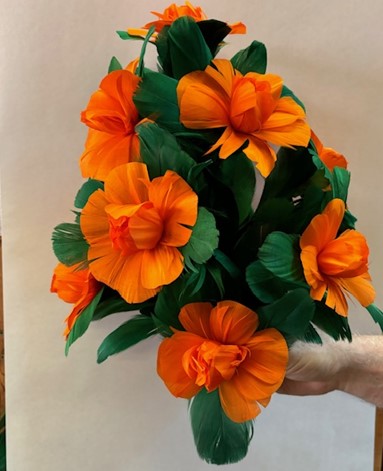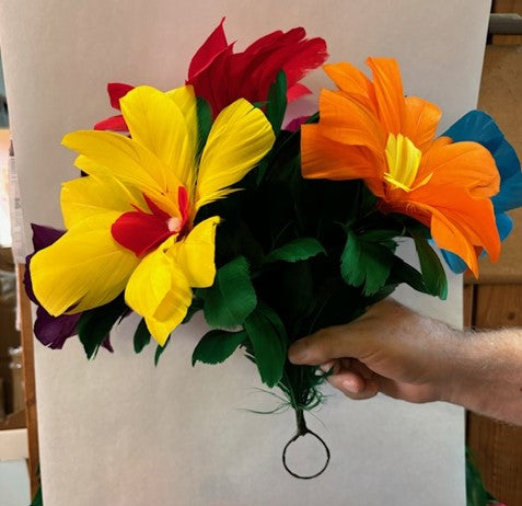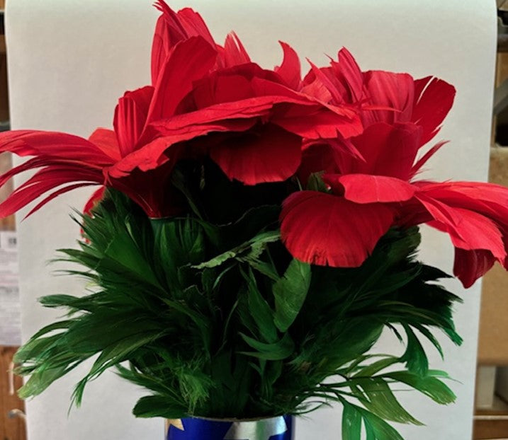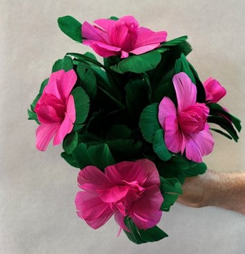 Abbott Magic presents The Blooming Bouquet. Large and beautiful red blooms plus old-world craftsmanship sets this apart from the cheap imports. The performer displays the large and beautiful bouquet. He than plucks the visible flowers tossing them to the ground where the stick upright. Gesturing to the budless bouquet he give the foliage a little shake and suddenly the bouquet begins to bloom again, replacing the flower just removed.