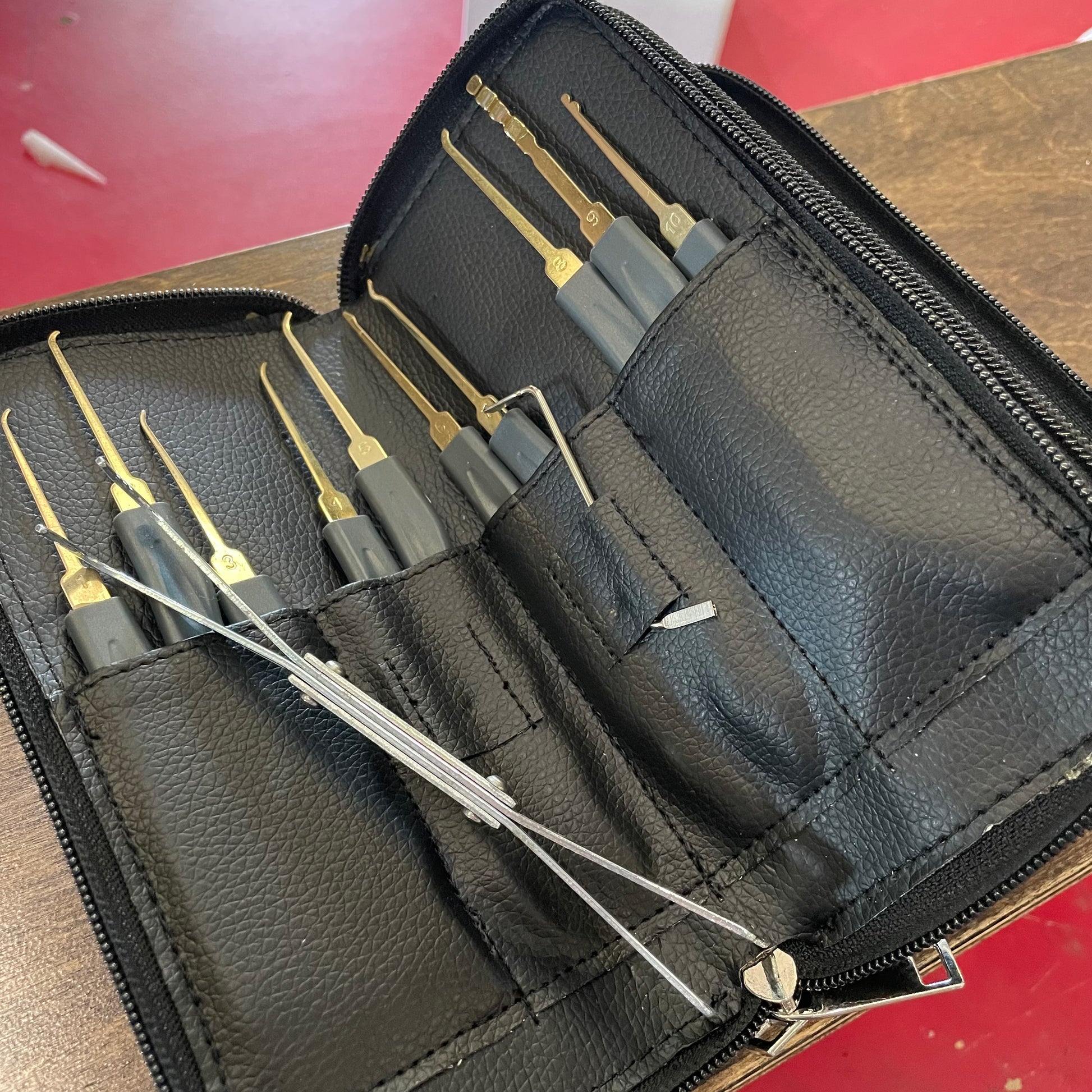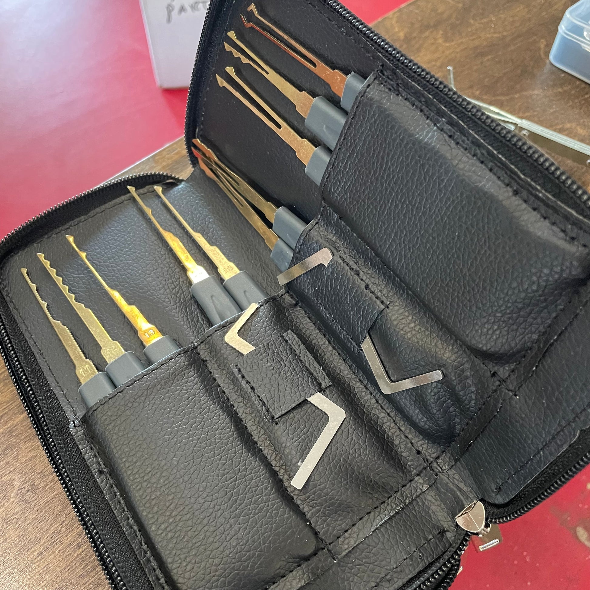 Each lock pick tool has it's own storage sleeve in the case to ensure the tool is exactly kept and stored an appropriate spot.