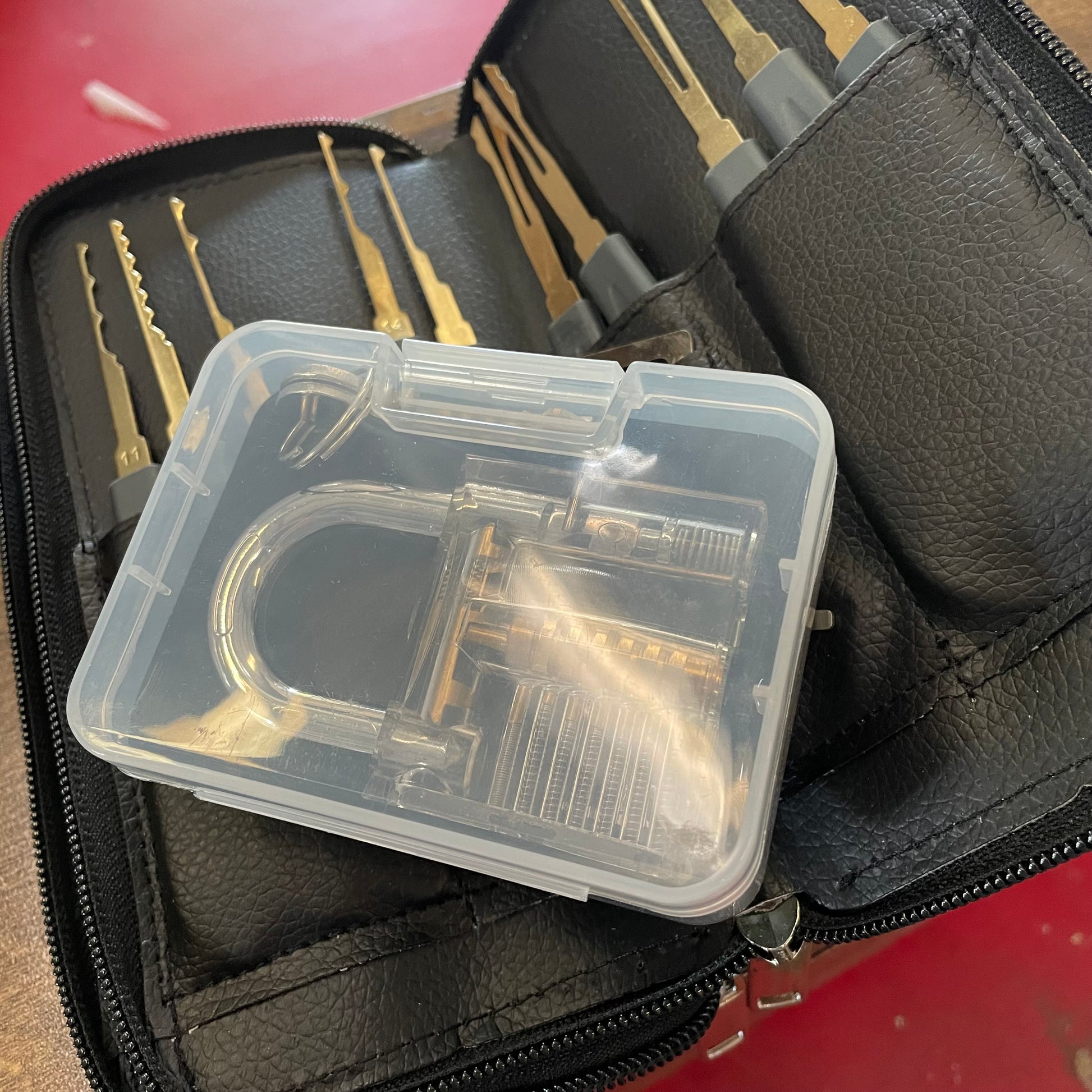 This large professional set contains 24 lock picking tools contained in a zipper case with a clear practice padlock included.