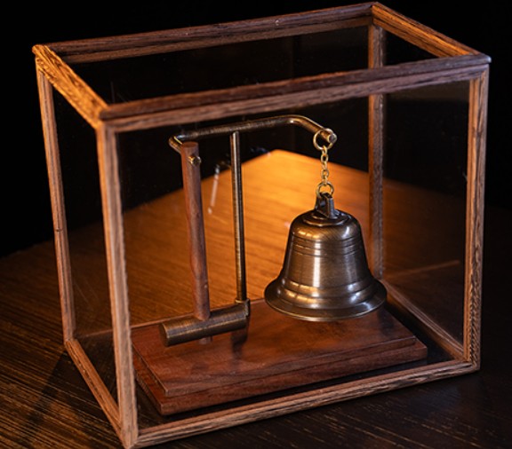 In place of the traditional ringing mechanism, a mystifying swinging hammer now gently strikes the thick, resonant bell, seemingly of its own accord. Mounted atop a beautifully hand-crafted wooden base, this elegantly designed system doesn't just ring it speaks, as if echoing whispers from beyond.